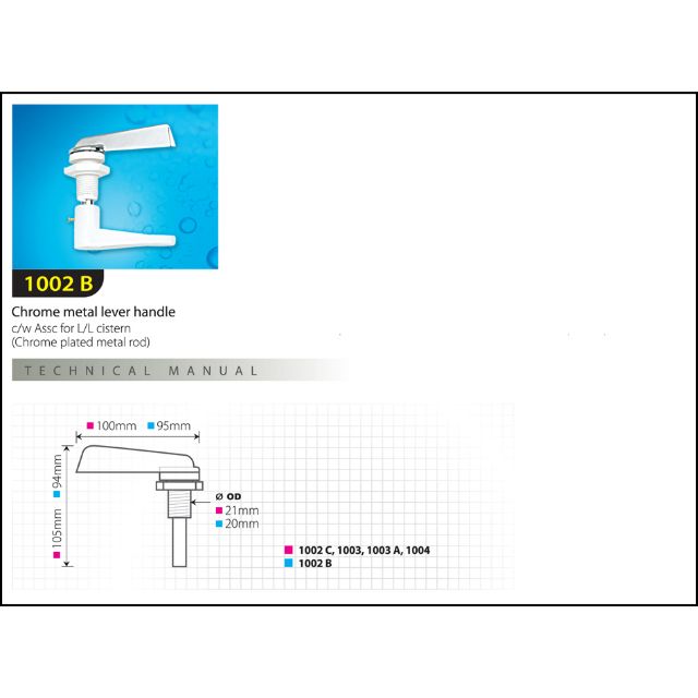 Metal Cistern Lever / Package includes a choice of pans, cistern kit, the metal cistern and a seat.. Check the caption for meanings ». That's where this contemporary cistern lever comes in! Suitable for handle action cisterns. Package includes a choice of pans, cistern kit, the metal cistern and a seat. Simple to install, instructions included.